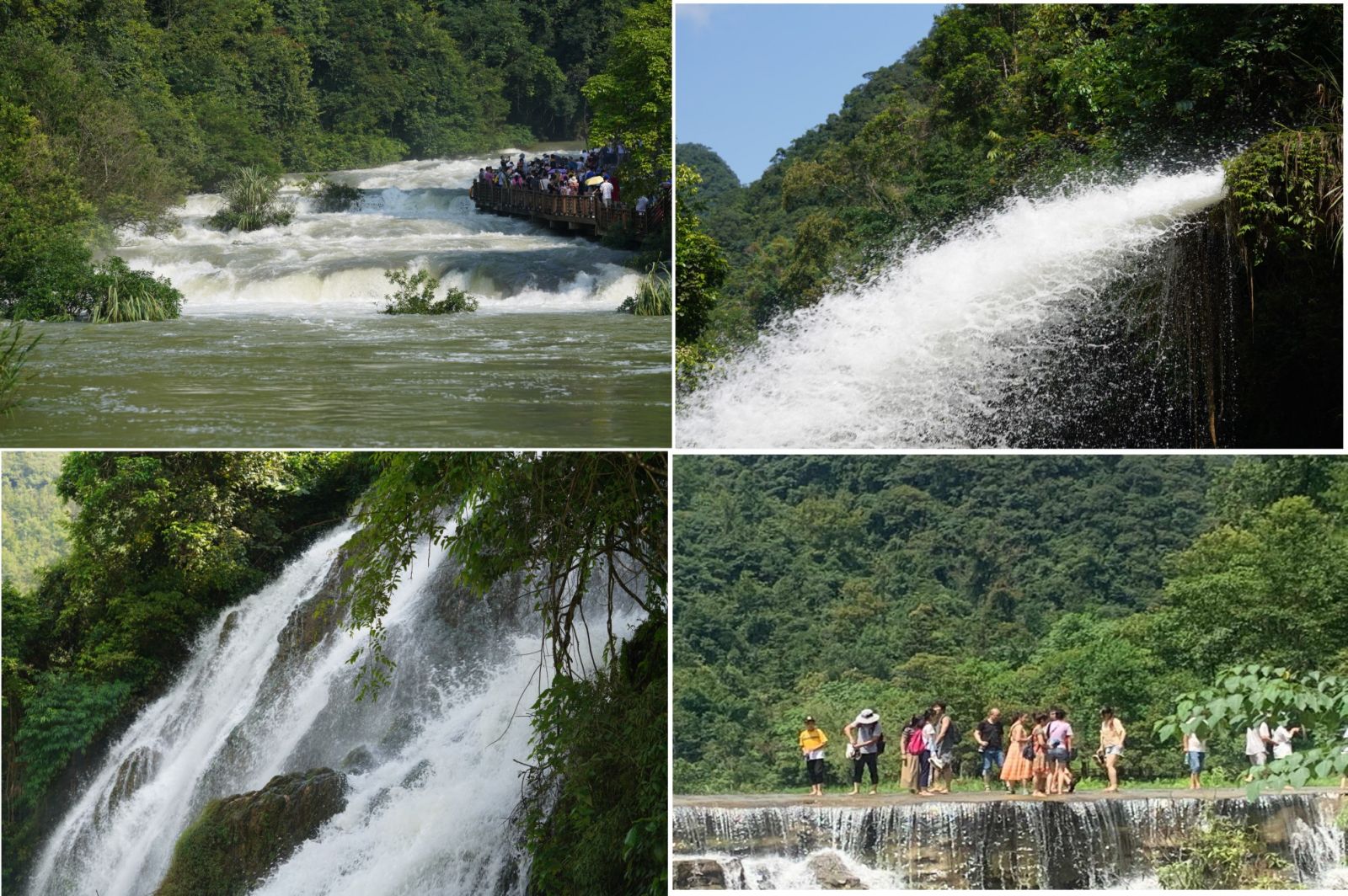 黃果樹景區以黃果樹瀑布為中心,分有天星橋、陡坡塘等,我們到達景區直接坐觀光大巴直達黃果樹大瀑布,浩大的水勢讓離得很遠的游客都濺上了水,氣勢恢宏,水流湍急。比較遺憾的是由于水量過于充沛導致水簾洞封閉,游客只能止步。天星橋景區位于黃果樹大瀑布下游7千米處,這里主要觀賞石、樹、水的美妙結合,是水上石林變化而成的天然盆景區,如果說大瀑布是氣勢磅礴,則天星橋就是玲瓏秀美。