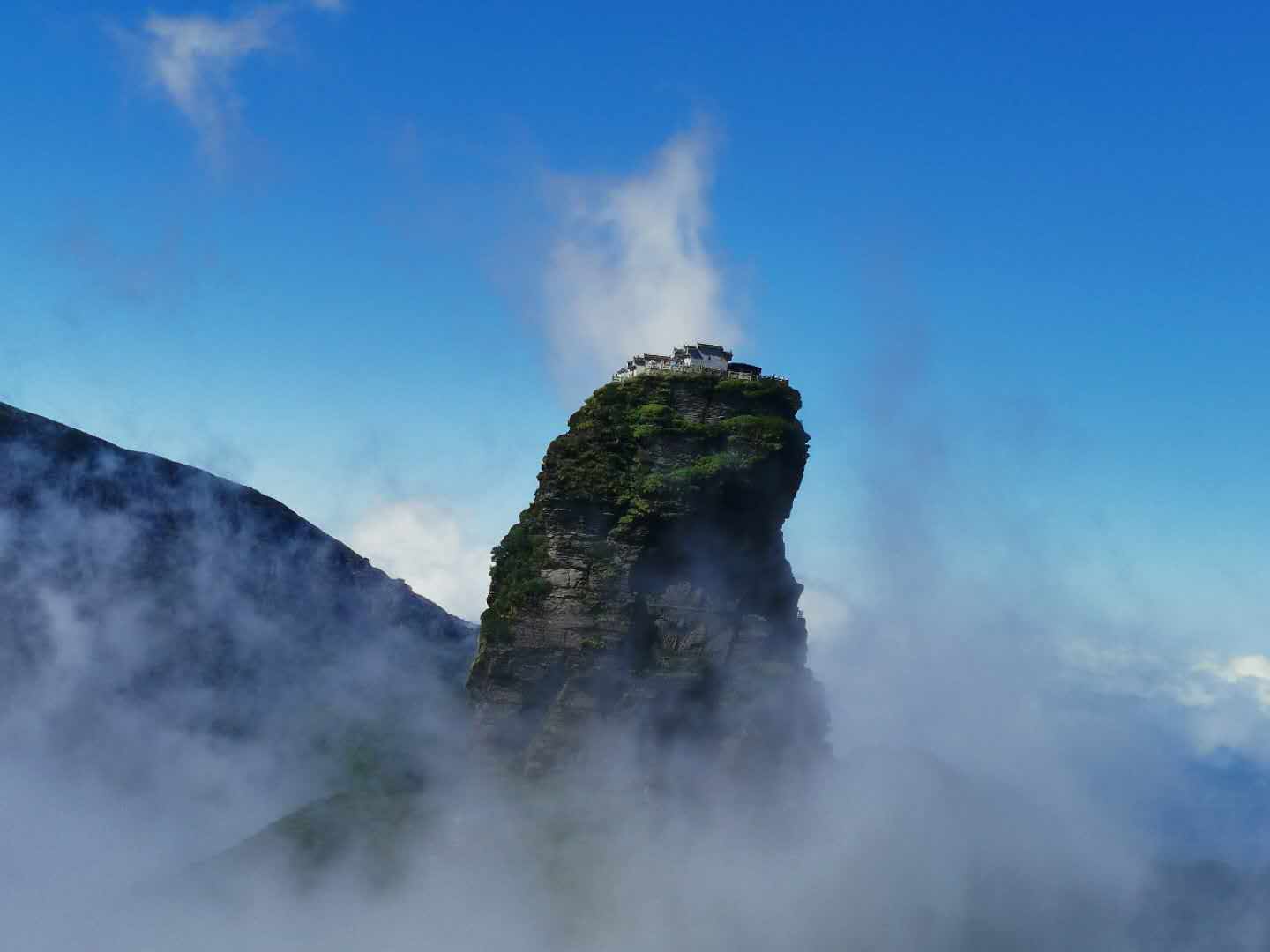 梵凈山是中國著名的佛教道場和自然保護區。顧名思義,它是人間凈土,婉如仙境,遠離凡塵與喧囂。梵凈山主要分為兩座山峰一老金頂和紅云金頂。其中最使游客慕名前來的便是紅云金頂,它由兩座緊緊相連的徒峭山峰組成,在兩座峰頂各設有一座道院被中間一座石橋所連接,走在上面,身邊圍繞著絲絲縷縷的云霧,陽光穿透云層,給郁郁蔥蔥的樹木都渲染上一層金黃。不過,為了看到這樣動人心魄的美景,還要先坐很長一段的纜車才行。這纜車是我坐過的最震撼的了,因為梵凈山的徒峭,腳下是萬丈深淵的峽谷,而從踏上纜車的那一刻起,使向云層飛去。徒峭的巖壁上,每一寸都長滿了茂盛的植被,猶如大自然親手編織的一張綠毯,贈予了梵凈山的這絕崖峭壁,讓人無不嘆服生命的頑強與生生不息,在這林間,偶然間能夠瞥見一股細細流淌的山間清泉在崖壁上跳躍。很快,山谷更加幽深了,而天空卻仿佛觸手可得。向下望去,山脈連綿起伏,而遠處的山峰已然淹沒在云霧當中。若不是望見那幾條延深到視野盡頭的黑色鋼索,恐怕還以為身在飛機的機艙內呢。 我們一行人上的是老金頂,要比紅云金頂還要高出一百多米呢。山上的石階非常狹窄陡峭,到了最后,基本需要雙手扒著一根石壁上的鐵索,側身而行。這條路只能容一人前行, 人行在兩邊巨大巖石的縫緣里,頭頂上只能望見一線天。而且,由于前后都有行人,便看不到前方的路還有多遠,也便沒有退路。更有那么一段路,清涼的泉水從山間縫隙中傾瀉而下,淋在我們身上,使我們所有人的衣服頭發都濕透了。而這泉水也使腳下的臺階生了臺蘚,使這本身就陡峭的山路更加險峻,稍一不留神就可能跌入萬丈深淵。 前路漫漫,總是充滿了艱難險阻,但是只有堅持到最后一刻,才能領略到山頂的美景,才知道一路上的艱辛終是值得。身置云海之上,頭頂的天是那種純粹的藍。原本那些高聳入云的山峰現在已經在腳下,在云層里若隱若現,仿佛浪花里涌現出的礁石。癡癡地望著天邊,想起那句“梵凈山久住必成仙”,禁不住幻想那用白云所砌,以陽光鍍金的宮殿。 人間若有這般凈土,也就真的與仙境無異了。