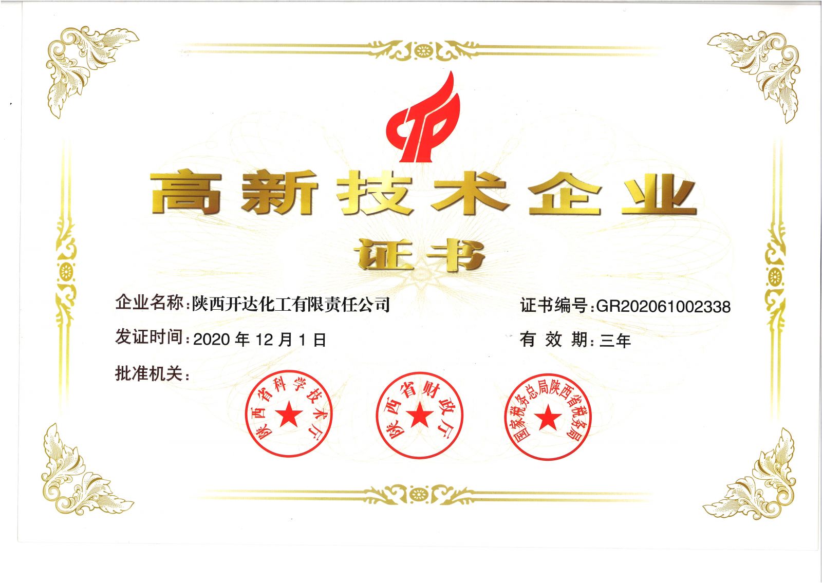根據《高新技術企業認定管理辦法》和《高新技術企業認定管理工作指引》有關規定,寶雞市2021年1月認定高新技術企業名單發布了公示,陜西開達化工有限責任公司榜上有名,榮獲國家高新技術企業,并取得高企證書。 高新技術企業既是政府為調整產業結構、提高國家競爭力的重要戰略布局,也是對企業研發、創新能力的認可與支持;國家高新技術企業的資質認定須同時滿足知識產權、科技成果轉化能力、研究開發的組織管理水平、企業經營成長性指標等考核條件。認定標準嚴苛,認定程序嚴謹。 此次陜西開達榮獲國家高新技術企業認證,表明我公司在技術創新、科技成果轉化、擁有核心自主知識產權等方面得到了國家的高度認可。未來,陜西開達將砥礪前行,著力加大科研投入、培養人才隊伍來構筑全新的技術創新體系。