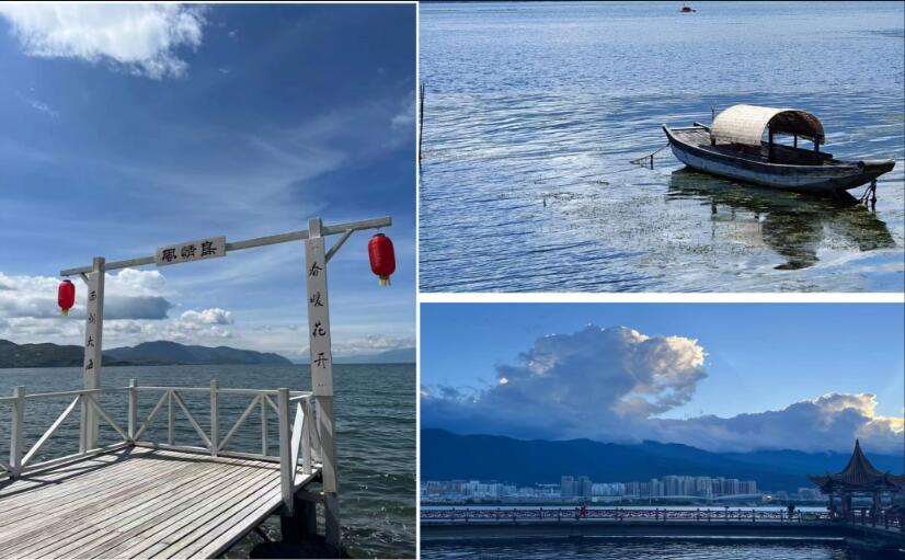 第五天 大理(洱海) 今天是特別有意思的一天,也是特別難忘的一天,今天的行程是繞洱海一圈,體驗(yàn)整個(gè)洱海的魅力,吹著洱海畔的風(fēng),感受最柔軟的水,天是藍(lán)色的,海也是藍(lán)色的,人也藍(lán)色的,美的就像一幅畫,很和諧,很舒服。洱海邊的古鎮(zhèn)也是值得留念,雙廊古鎮(zhèn)、喜洲古鎮(zhèn)都有自己的特色,這個(gè)古鎮(zhèn)位于蒼山之麓,是個(gè)歷史悠久的白族古鎮(zhèn),保留了許多傳統(tǒng)建筑和文化遺產(chǎn)。有生之年,一定要去一次洱海,洱海的風(fēng)景總是一眼萬(wàn)年的。