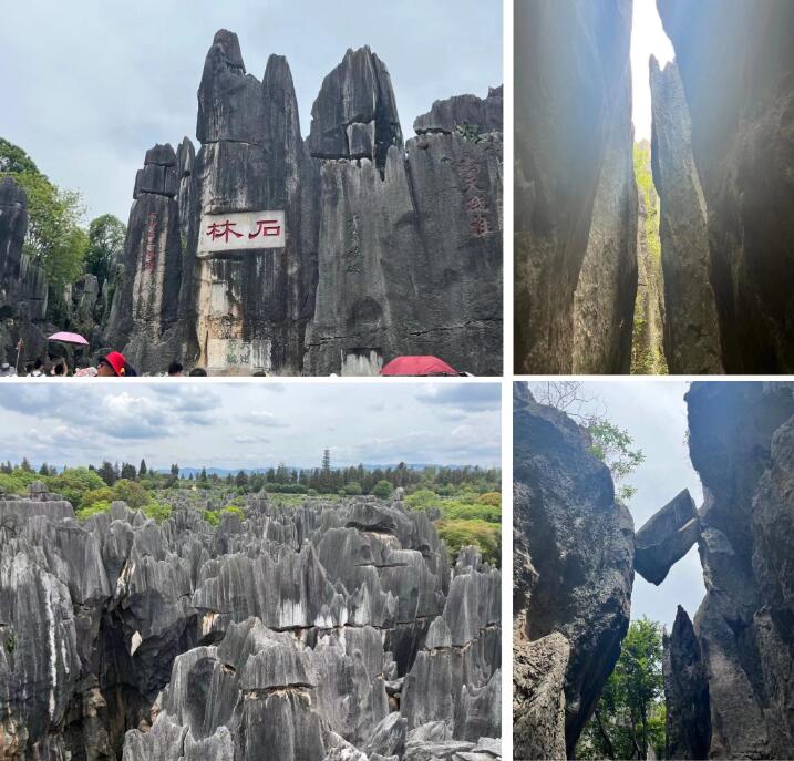 第三天 昆明(九鄉(xiāng)-石林) 上午集體去宜良九鄉(xiāng)溶洞,九鄉(xiāng)風(fēng)景區(qū)地處山區(qū),氣候溫涼,區(qū)內(nèi)峰戀連綿,溶洞分布區(qū)內(nèi)地勢(shì)上升,河流下切浸蝕,在強(qiáng)大的地太水流和地下水流作用下,形成九鄉(xiāng)奇異、雄渾、壯觀的喀斯特洞穴群和九鄉(xiāng)蔭翠峽,奇特的溶洞系統(tǒng)甚是壯觀。大家進(jìn)大門順扶梯盤旋而下,瀏覽了約3小時(shí)左右,途經(jīng)蔭翠峽、白象宮、神女宮、臥龍洞等,曲折幽深,不知所終。下午的石林更是世界罕見的風(fēng)景名勝,是大自然鬼斧神工的杰作,石林景區(qū)主要分布在石林胡、大石林和小石林,在這野嶺荒山中,許多奇峰怪石點(diǎn)綴其間,這些異石個(gè)體龐大,形象生動(dòng),群聚成一片大森林,讓游覽別具一種情趣和感受,參差崢嶸,千奇百態(tài),巧奪天工,真謂“天下第一奇觀”。